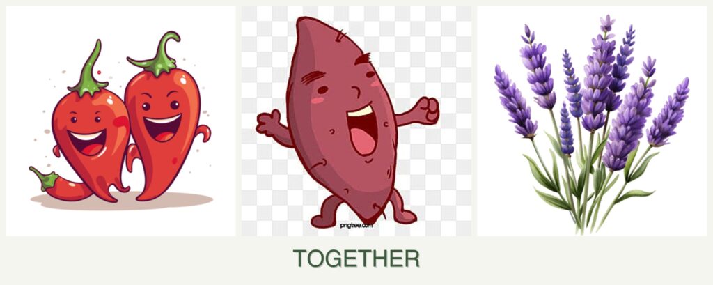 - Pest Control: Lavender acts as a natural pest deterrent, benefiting both peppers and sweet potatoes.