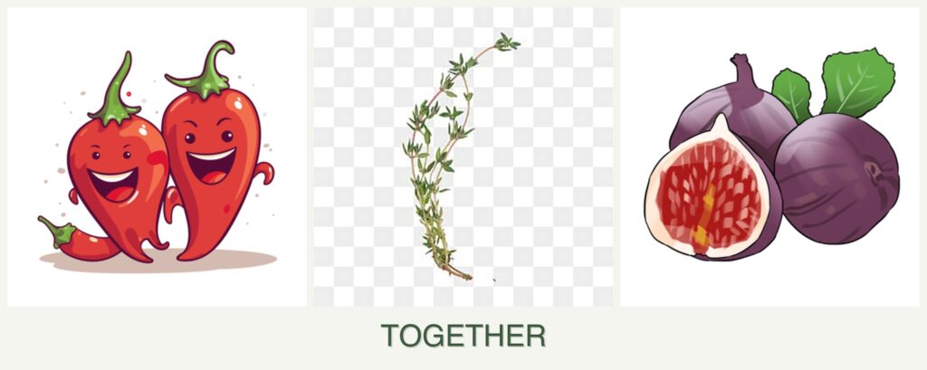 - Growth Requirements: Peppers and thyme both prefer full sun, as do figs, making them compatible in terms of sunlight needs.