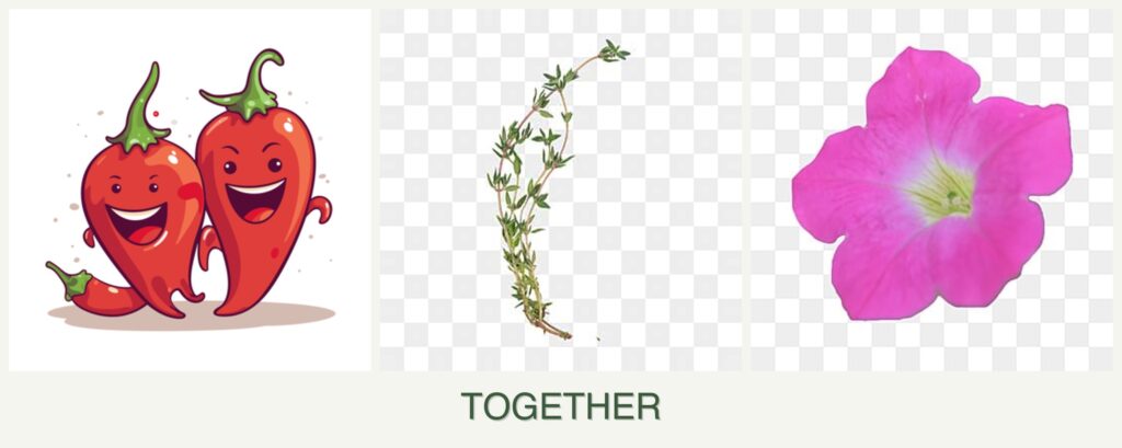 Can you plant peppers, thyme and petunias together?