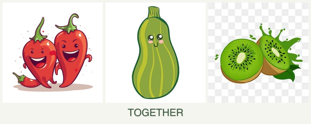 While peppers and zucchini can be planted together, adding kiwi to the mix is not beneficial. However, planting peppers and zucchini together can: