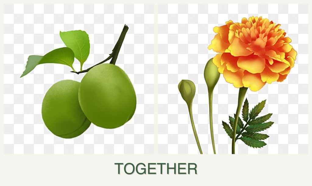 Yes, you can plant plums and marigolds together, and doing so can be quite advantageous. Marigolds are known for their pest-repelling properties, which can benefit plum trees by reducing the presence of harmful insects such as nematodes. These flowers release a chemical called alpha-terthienyl, which deters pests. Additionally, marigolds are low-growing and won’t compete with plum trees for sunlight. Both plants prefer similar growth conditions, such as well-drained soil and full sun, making them compatible companions in the garden.