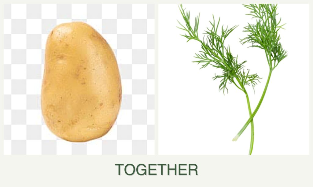 Space Efficiency: Both plants can be grown in the same area, maximizing garden space. Dill’s upright growth habit allows it to coexist with the bushy nature of potato plants.
