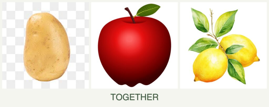 Growth Requirements: Potatoes thrive in cooler climates, while lemons require a warm, subtropical environment. Apples fall somewhere in between, needing a temperate climate. This difference in climate needs makes it difficult to grow them together.