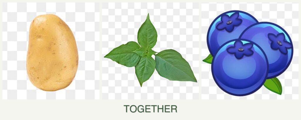 - Resource Competition: Potatoes and basil might compete for nutrients, but blueberries require different resources.