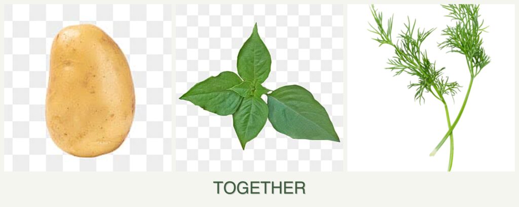 - Competition for Resources: Potatoes’ high nutrient demands can starve basil and dill.