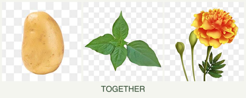 Planting potatoes, basil, and marigolds together offers several advantages:
