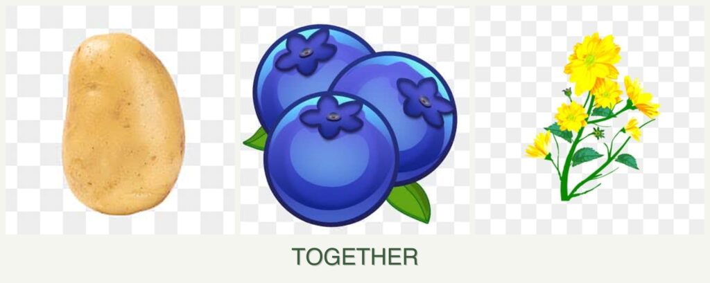 - Companion Plants: Potatoes pair well with beans and calendula, while blueberries thrive alongside rhododendrons and azaleas.