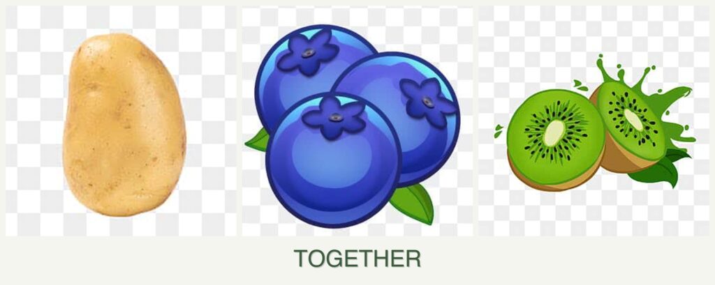 - Nutrient Needs: Blueberries need high acidity, which is not suitable for potatoes. Kiwi plants have different fertilization needs.