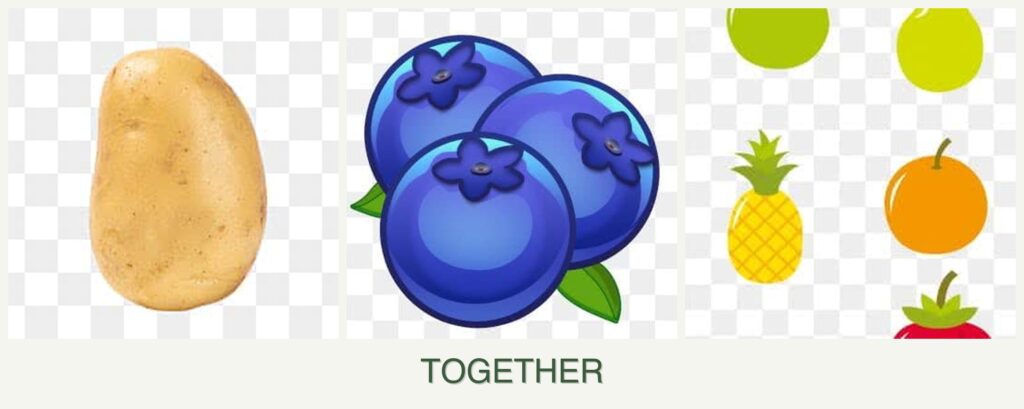 - Resource Competition: Potatoes and pears compete for nutrients, while blueberries require specific soil conditions.