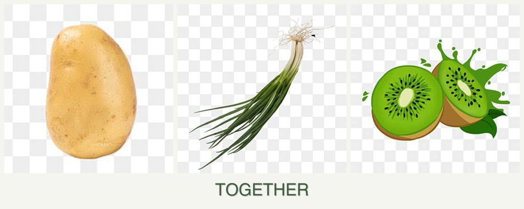 While potatoes and chives can be planted together, introducing kiwi presents challenges: