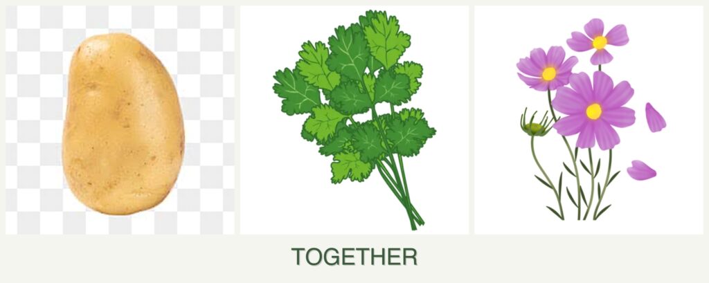 Planting potatoes, cilantro, and cosmos together offers several advantages: