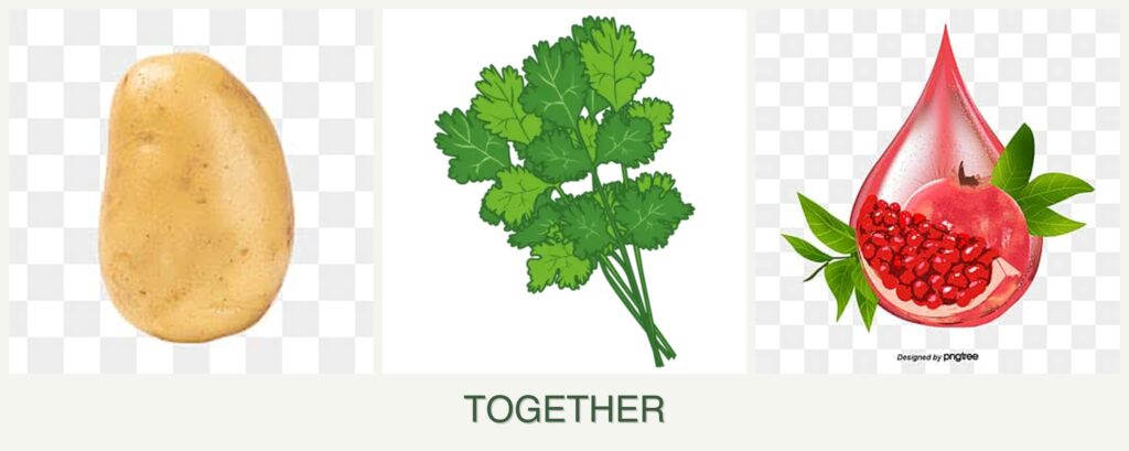 - Growth Requirements: Potatoes and cilantro prefer cooler temperatures and can thrive in similar soil conditions, whereas pomegranates require a warmer climate and well-drained soil.