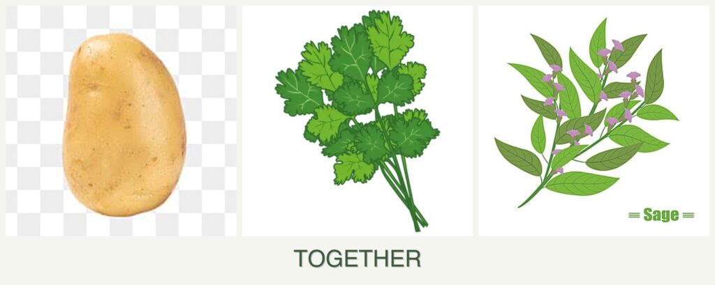 Planting potatoes, cilantro, and sage together can offer several benefits: