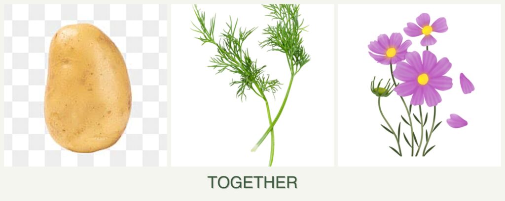 Planting potatoes, dill, and cosmos together offers several benefits: