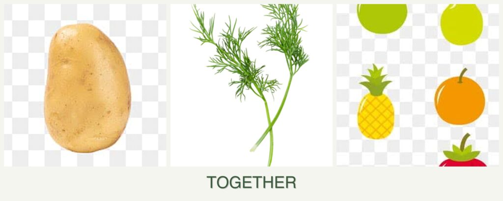 Potatoes and Dill: Dill can improve potato growth by attracting beneficial insects and repelling pests. However, dill should be planted at a distance to avoid inhibiting potato growth when it matures.
