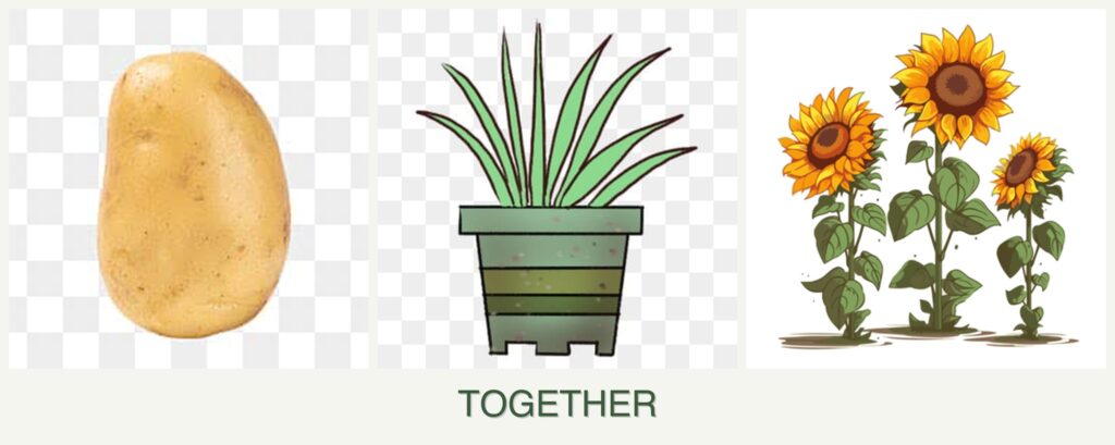 - Improved Growth: Sunflowers can offer shade and wind protection to potatoes, enhancing their growth in hot climates.