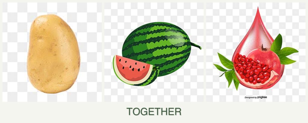 - While not recommended together, plant each in its ideal season: potatoes in early spring, melons after the last frost, pomegranates in spring.