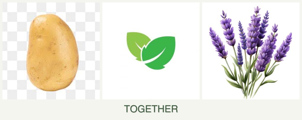 - Plant potatoes in early spring and lavender in late spring, but ideally keep them separate.