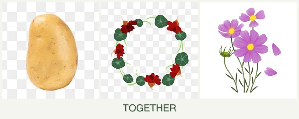 Planting potatoes, nasturtiums, and cosmos together offers numerous benefits: