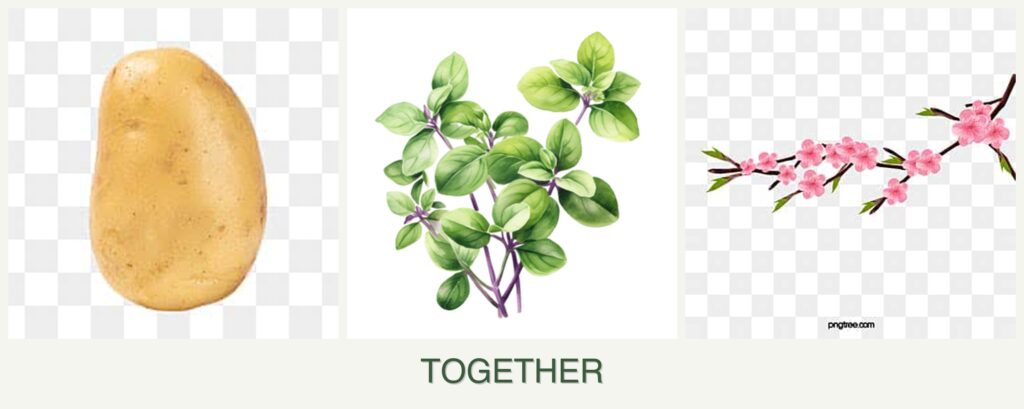 Can you plant potatoes, oregano and peaches together?