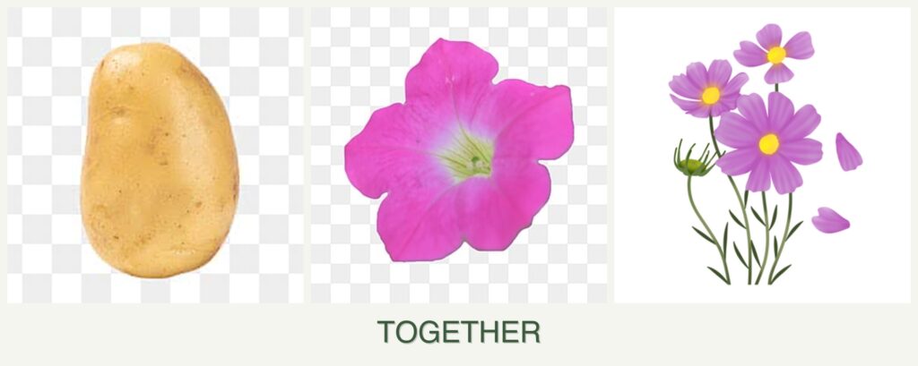 - Pest Control: Petunias help protect potatoes by repelling common pests, while cosmos attract beneficial insects.