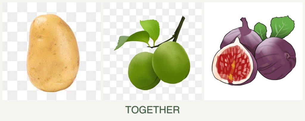 - Spacing: Potatoes need space to expand underground, whereas plums and figs require room for their expansive root systems and canopy.