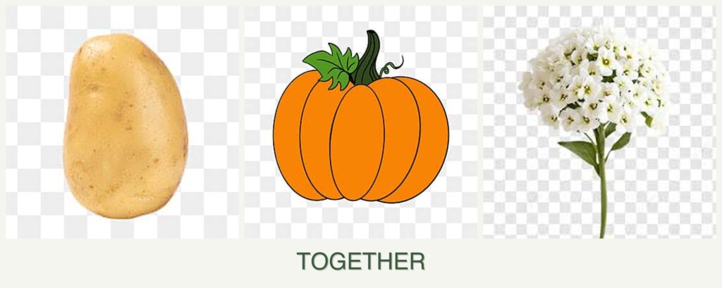 Planting potatoes, pumpkins, and alyssum together can offer several advantages: