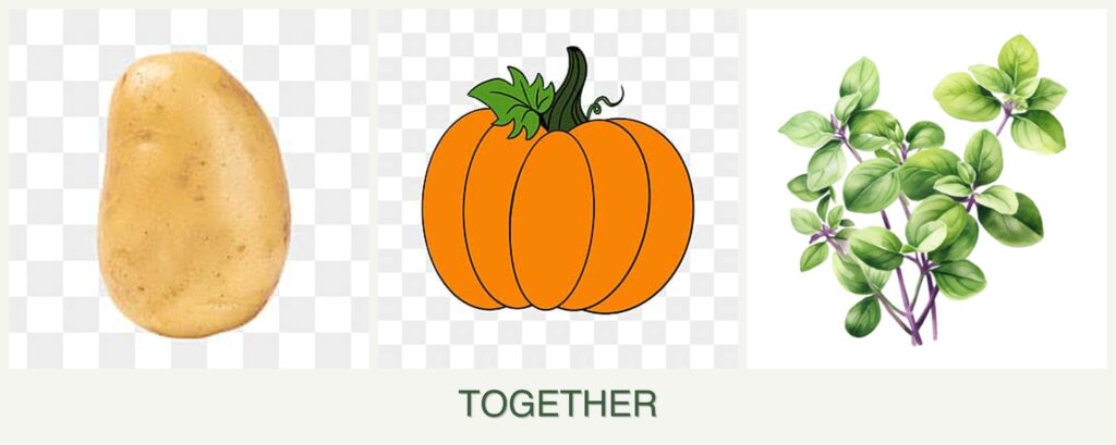 Can you plant potatoes, pumpkin and oregano together?