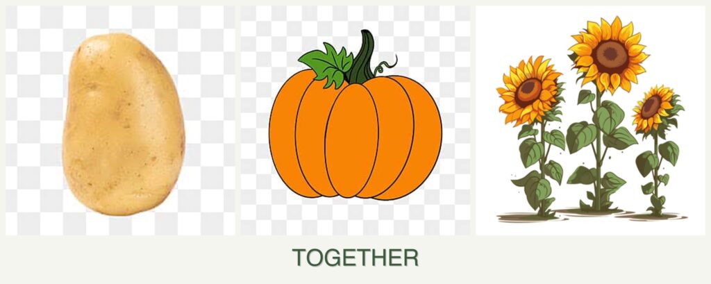 - Space Efficiency: Sunflowers grow vertically, allowing pumpkins and potatoes to spread horizontally, maximizing garden space.