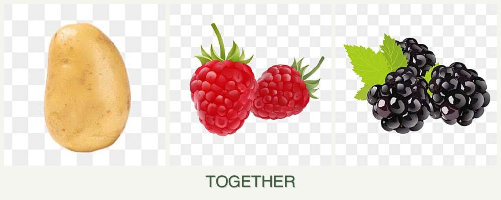 Can you plant potatoes, raspberries and blackberries together?