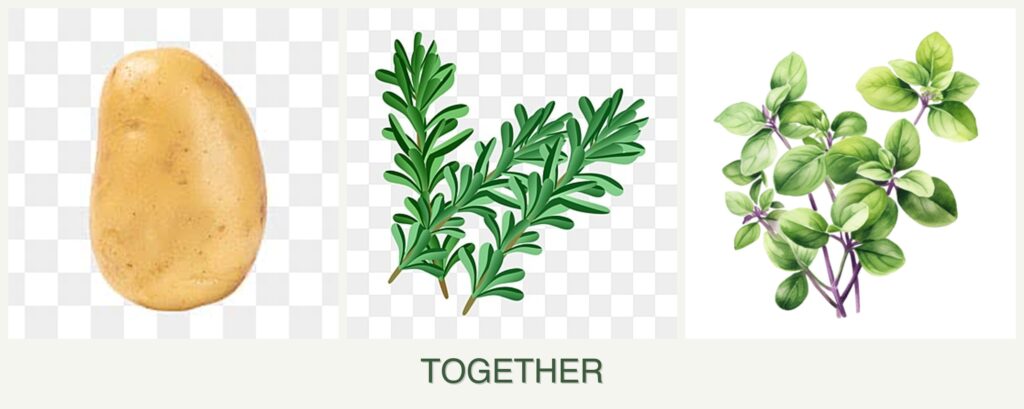 Planting potatoes, rosemary, and oregano together offers several benefits: