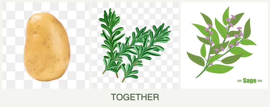 Planting potatoes, rosemary, and sage together can offer several benefits: