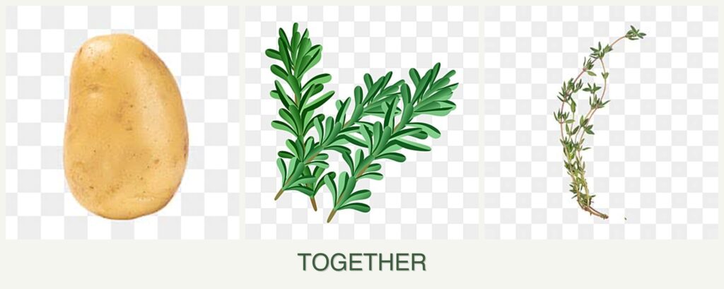 Growth Requirements: Potatoes thrive in full sun, similar to rosemary and thyme, making them suitable companions in terms of sunlight needs. However, potatoes require more water than the drought-tolerant rosemary and thyme.