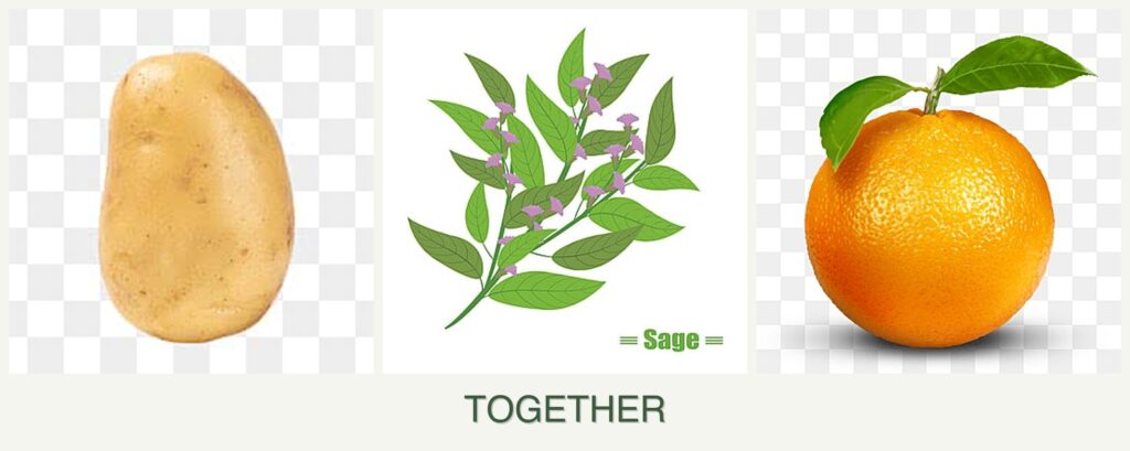 While potatoes, sage, and oranges aren’t ideal companions, some benefits can be achieved by careful planning: