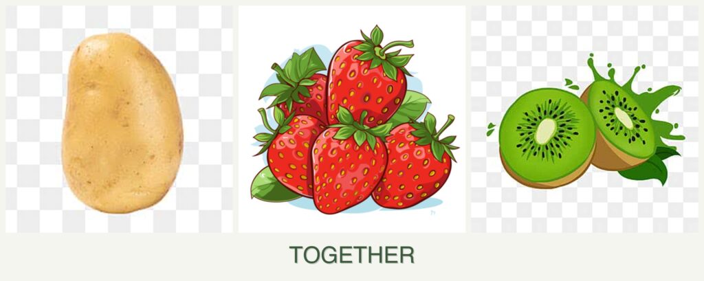 - Resource Competition: Potatoes’ high nutrient needs can deprive strawberries and kiwi of essential nutrients.