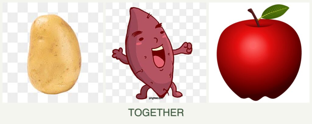 - They should not be planted together; plant potatoes and sweet potatoes after the last frost, and apples in spring or fall.