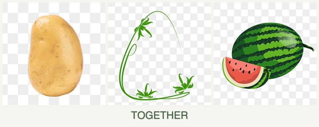 - Resource Competition: Potatoes and melons compete for nutrients and water.