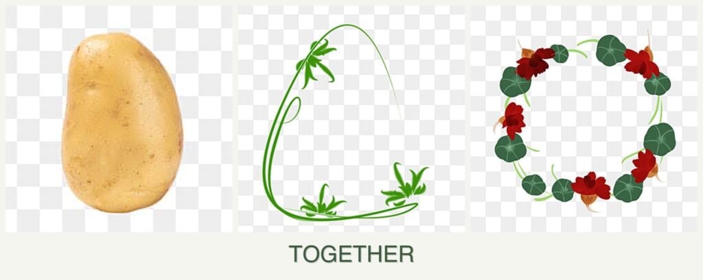 - Space Efficiency: Nasturtiums’ trailing habit allows them to fill spaces between potato plants.