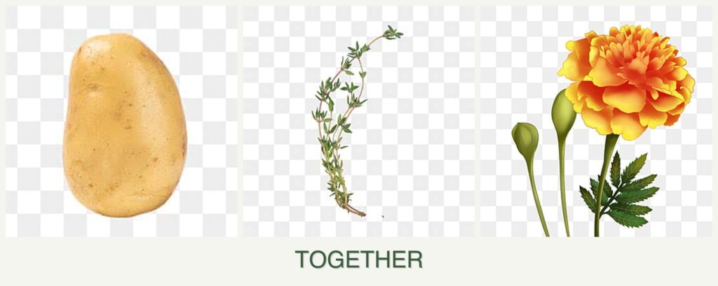 Planting potatoes, thyme, and marigolds together offers several advantages: