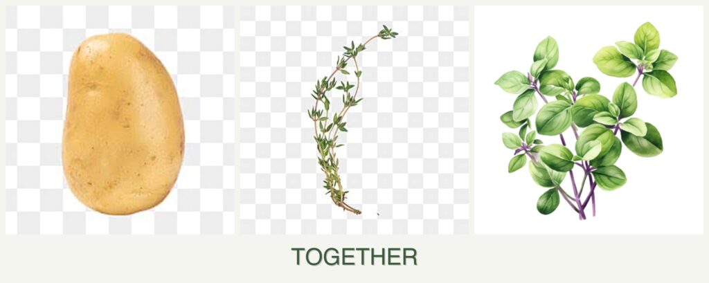 - Pest Repellent Properties: The aromatic oils in thyme and oregano can help repel pests that target potatoes.