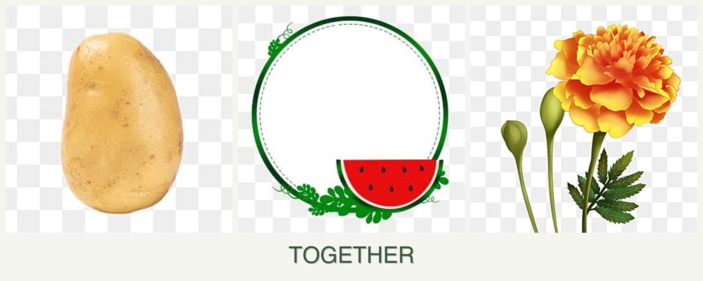 - Spacing: Watermelons need plenty of space to sprawl, whereas potatoes grow underground, and marigolds can be interspersed without much interference.