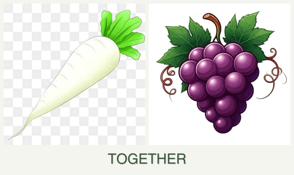 - Harvesting Considerations: The rapid growth of radishes may disturb grape roots if planted too closely.