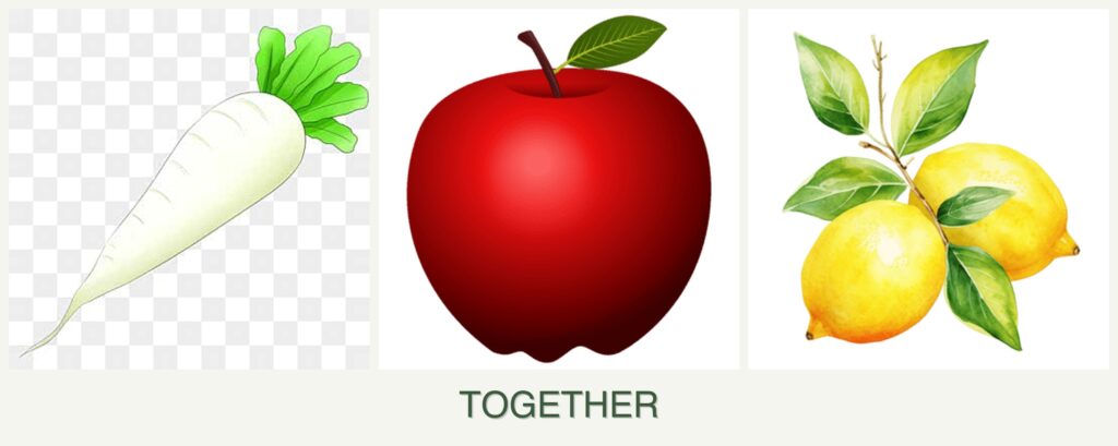 - Resource Competition: Apples and lemons require significant space and resources, which could overshadow radishes.