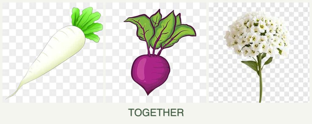 Nutrient Needs: Radishes and beets have similar nutrient requirements, thriving in well-drained, nutrient-rich soil. Alyssum is not a heavy feeder, so it doesn’t compete aggressively for nutrients.