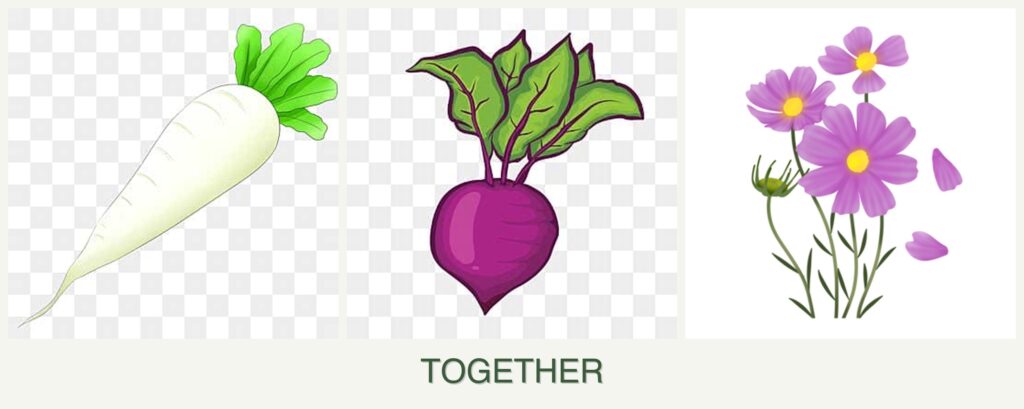Planting radishes, beets, and cosmos together offers several benefits: