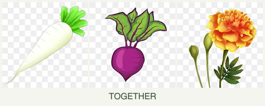 - Marigolds are known for their pest-repellent properties, which can protect both radishes and beets from harmful insects.