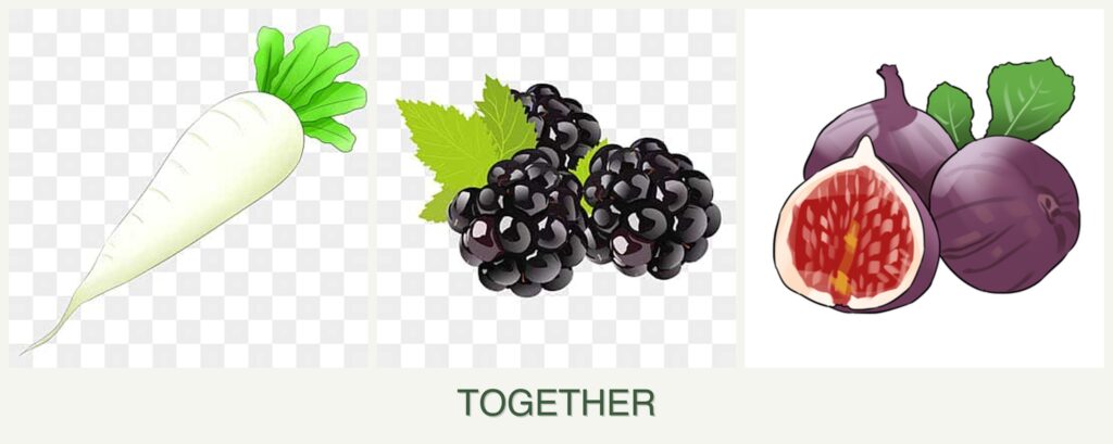 - Growth Requirements: Radishes grow quickly and are typically harvested before blackberries and figs mature, which limits direct competition. However, blackberries and figs have extensive root systems that may compete for nutrients with radishes.
