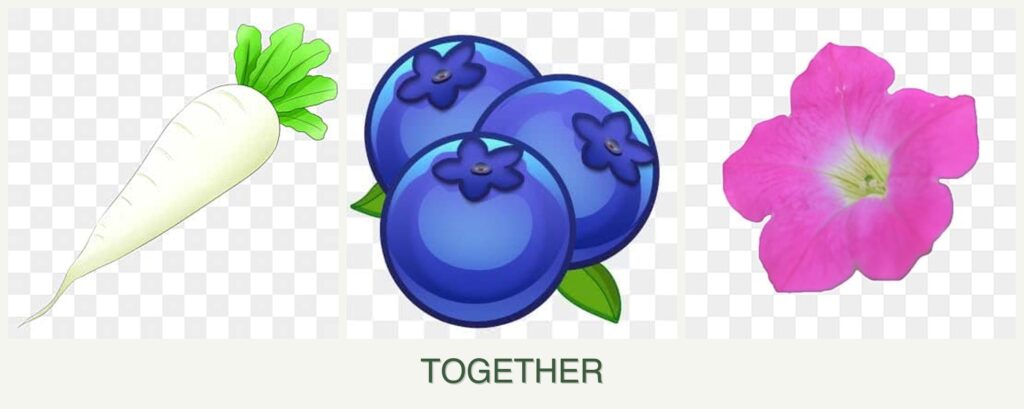 - Growth Requirements: Radishes need cool weather, blueberries require acidic soil, and petunias prefer full sun.