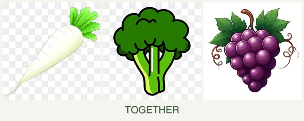- Growth Requirements: Radishes and broccoli both prefer cooler temperatures and can tolerate partial shade, while grapes thrive in full sun and warmer climates.