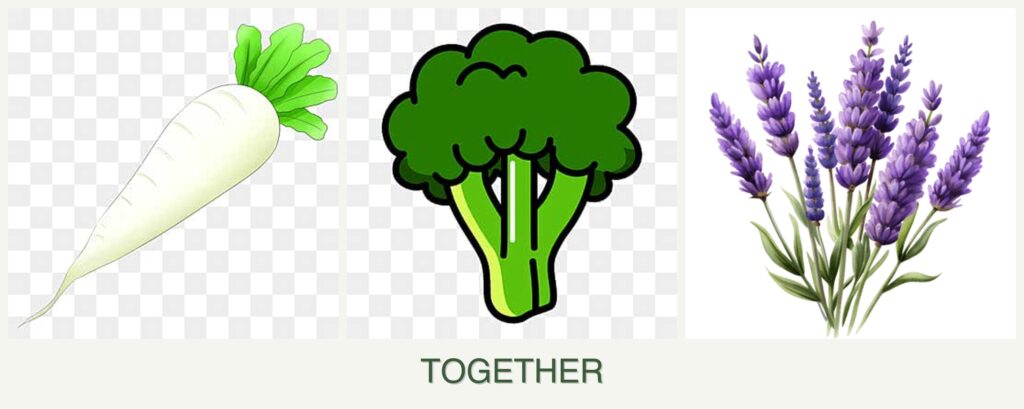 Planting radishes, broccoli, and lavender together can offer several advantages: